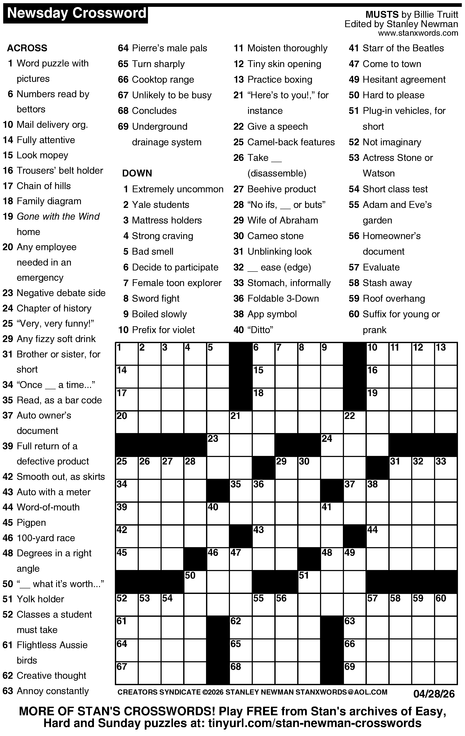 Crossword for 4/28/2026