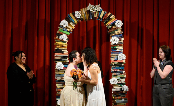 “Ever since I was little, I’ve loved going to the library, so it’s a treat and an honor to be married here,” said Pearl Kristina Faldet, who married Gabriel Copland Smith in the first of five ceremonies April 25, the last day of National Library Week.
